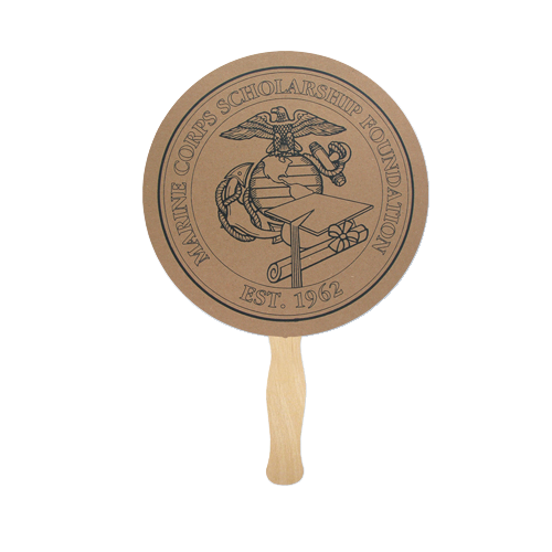 Product Specifications: Size: 8"x 8" Weight: 6.0 pounds per hundred items. Material: 26 point 100% recycled, unbleached, natural brown kraft chipboard with basswood handle. Packaging: 10 pieces per poly bag. For individual poly bags and $0.10(v)each. Prop 65: Per material safety data sheets and manufacturer testing this product is proposition 65 compliant. Options: When printing on the back of our single fans allow a 4"H x 1 1/4" W space for handle placement. Production: Normal production - 8 working days. For rush service - (click for details). Printing: Print Area: 7-3/4" x 7-3/4" Imprint covers face of fan. Multi-color: For each additional color add 1 additional color running charge and 1 set-up charge of $50.00(v). Method: Silk-screened. Print Colors: Stock colors included. |