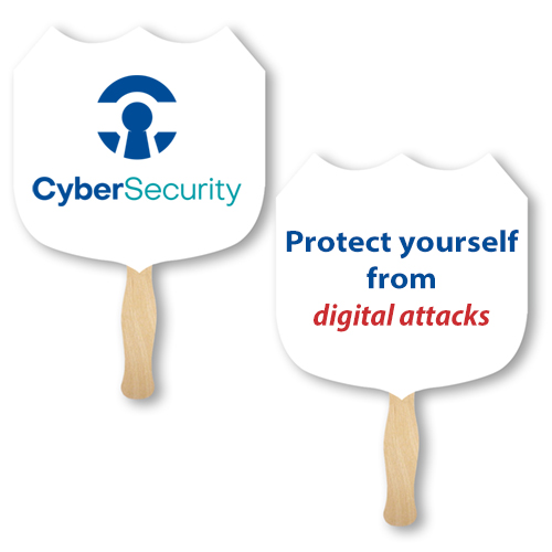 These sandwiched hand fans are expertly printed on 14 pt coated board stock paper. A 8" basswood handle is attached in between the card stock with adhesive creating the custom Sandwiched Hand Fan. Excellent for any indoor or outdoor event. These mini billboards will cool you off while displaying your custom message. Excellent product for sports, games, trade shows, political & corporate events, fundraisers, churches, businesses, graduation, weddings, and parties. No charge for PMS color matching.