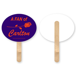 Product Specifications: Size: 4-3/4" x 3-3/4" Weight: 5.0 pounds per hundred items. Material: 14 point coated board stock paper with basswood handle. Packaging: 10 pieces per poly bag. For individual poly bags and $0.10(v)each. Prop 65: Per material safety data sheets and manufacturer testing this product is proposition 65 compliant. Options: Production: Normal production - 8 working days. For rush service - (click for details). Printing: Print Area: 4-3/4" x 4-3/4" Imprint covers face of fan. Multi-color: Multi-color and full color printing is available. Add 1 additional color running charge and 1 plate charge for each additional color. For full color add 3 additional color running charges and 3 additional plate charges. Method: Offset Lithography. Print Colors: PMS colors and full-color printing. No charge for PMS spot colors! |