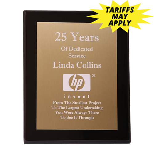Product Specifications: Size: Plaque: 7" x 9", Plate: 5" x 7" Weight: Material: Piano-Wood with Gold plate Packaging: Packaged in presentation gift box. Prop 65: No Report Options: N/A Production: Normal production - 8 working days. For rush service - (click for details). Printing: Print Area: Plate: 4 1/2" x 6 1/2" Multi-color: N/A Method: Laser engraving. Available Vertical or Horizontal. Set-up Charge $30.00(v). Personalization $4.00(v) each. Print Colors: N/A |
