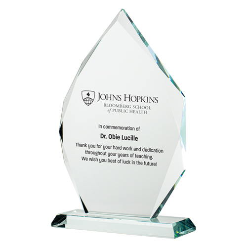 Product Specifications: Size: 5.5"W X 9"H X 2"D Weight: Material: Glass Packaging: Packaged in a blue presentation gift box. Prop 65: No Report Options: Silk Screen Copy change @$25.00(v) each. Personalization @$4.00(v). Laser Engrave: $9.00(v) each. Personalization @$4.00(v). Production: Normal production - 8 working days Printing: Print Area: 4"W X 5"H Multi-color: Multi color imprint available. Add a running 0.60(V) each per color, per position. Method: Silk-screen or Laser Engrave (see options). Print Colors: Multi color imprint available. Add a running charge of $ .60(V) each per color, per position. |