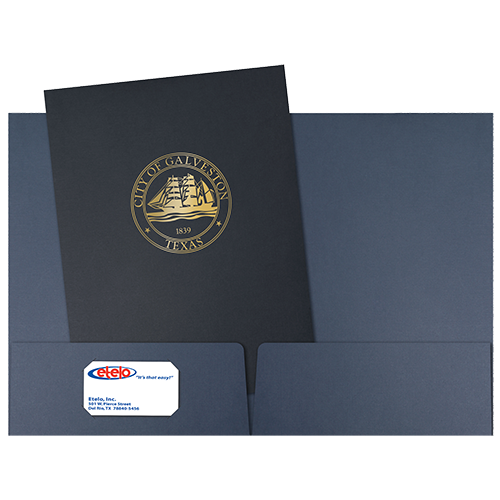 9" x 12" Heavy-weighted texture linen paper 2-pocket presentation folder. Constructed with durable 300 GSM card-stock paper with two 3-1/2" high pockets. The left pocket features card slits to securely hold and display standard size business card. Ideal for holding files, standard letter size 8 1/2" x 11" papers, contracts, proposals, reports, product literatures, flyers, documents, print media, brochures, notes, presentation materials, certificates and inserts at meetings, seminars, conventions, speaking engagements and networking events. Add your logo to complete the presentation on the front cover. Perfect for health, wellness & beauty industry to present their services.