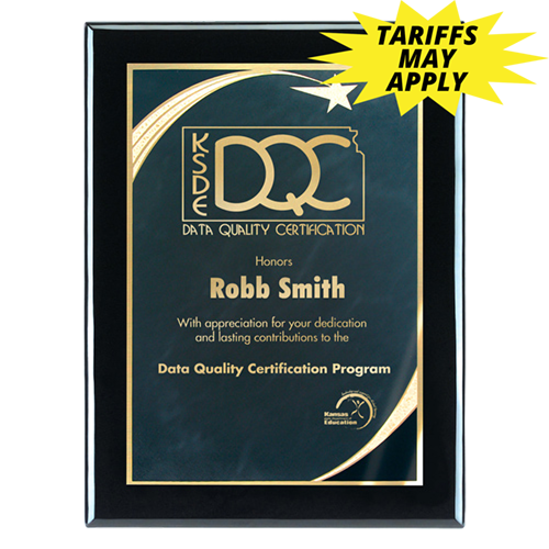 Product Specifications: Size: Plaque: 7" x 9", Plate: 5" x 7" Weight: Material: Piano-Wood with black plate Packaging: Packaged in presentation gift box. Prop 65: No Report Options: N/A Production: Normal production - 8 working days. For rush service - (click for details). Printing: Print Area: 3 1/2" x 5 1/2" Multi-color: N/A Method: Laser engraving. Available Vertical or Horizontal. Set-up Charge $30.00(v). Personalization $4.00(v) each. Print Colors: Gold |