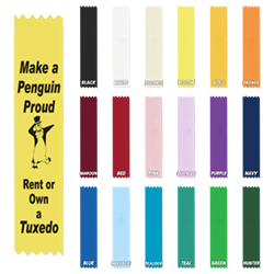 Product Specifications: Size: 1 5/8" x 8" Weight: Material: Polyester Satin Ribbon Packaging: Shrink wrapped in 100's. Prop 65: Per material safety data sheets and manufacturer testing this product is proposition 65 compliant. Options: Tape attachment: $ .10(v) each. Safety Pin attachment: $ .10(v) each. Bar Pin attachment: $ .225(v) each. Copy change charge: $ 17.50(v) per copy. Foil or/and Ribbon color change: $ 7.50(v) per change. Production: Normal production - 8 working days. Printing: Print Area: 1.4" x 7.5" Multi-color: Add 1 additional color running charge and 1 die charge for each additional color. Method: Hot/Foil stamped. Print Colors: Gold, Silver, Bronze, Burgundy, Hunter, Aqua, Fuchsia, Blue, Navy, Red, Violet, Green, Rainbow, Purple, and Black. |